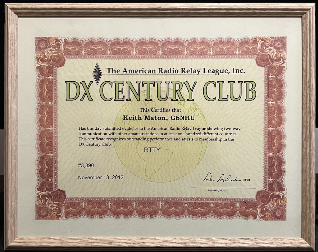 I appreciate RTTY is a slowly dying mode, very rarely used outside contests and the occasional DXPedition these days but I don’t care. I enjoy using it and I’m happy to have this certificate on my wall.